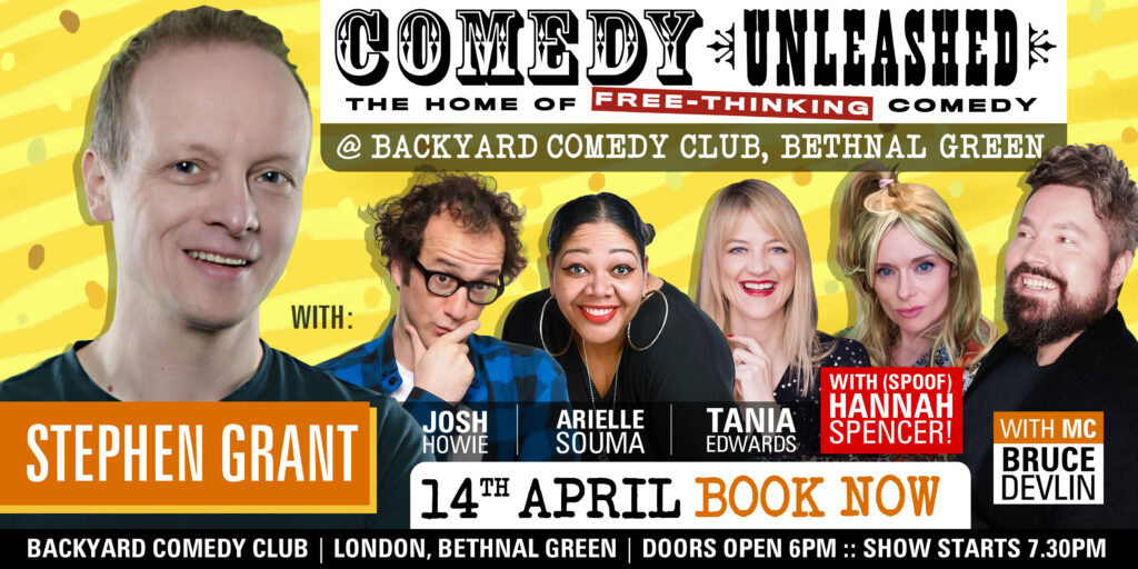 A night of free-thinking comedy with comedians who don’t self-censor. With Stephen Grant, Josh Howie, Arielle Souma, Tania Edwards, Spoof Hannah Spencer (Intel Lady), and MC Bruce Devlin. Doors open and food and drinks available from 6pm. Show starts 7.30pm and finishes at 10pm. Artists on the bill may change.